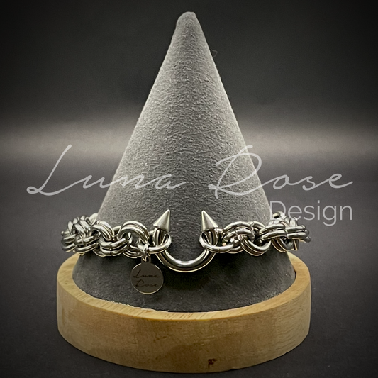 Chunky Simple Stainless Steel Bracelet & Spiked Horseshoe